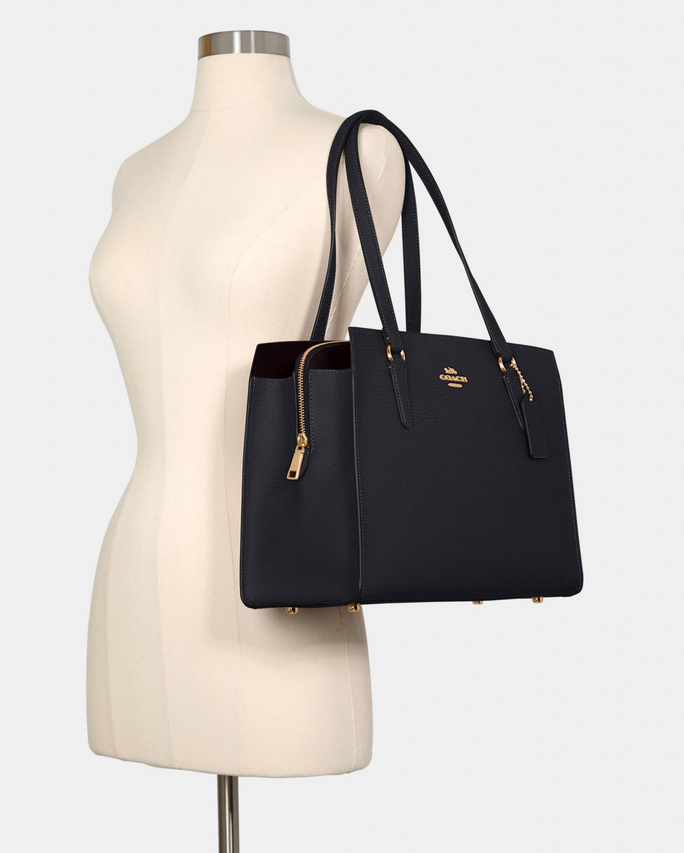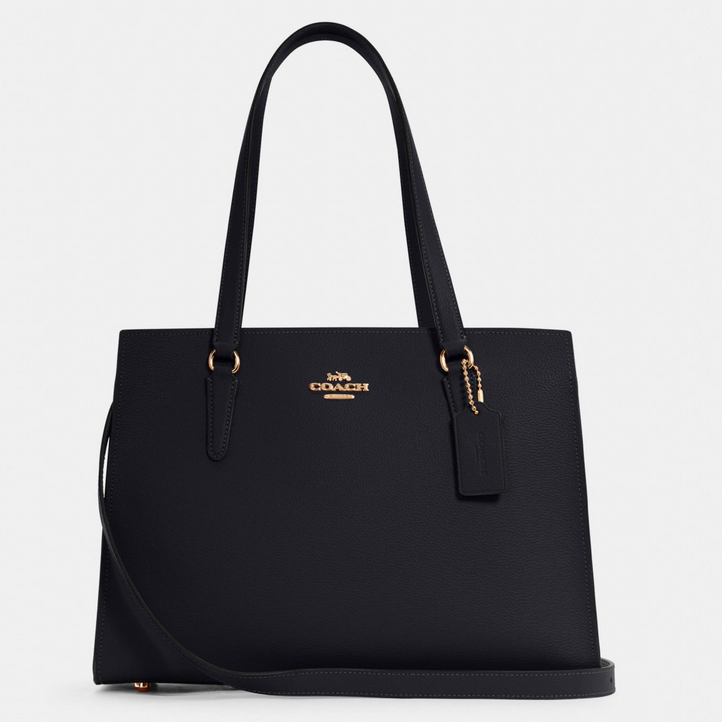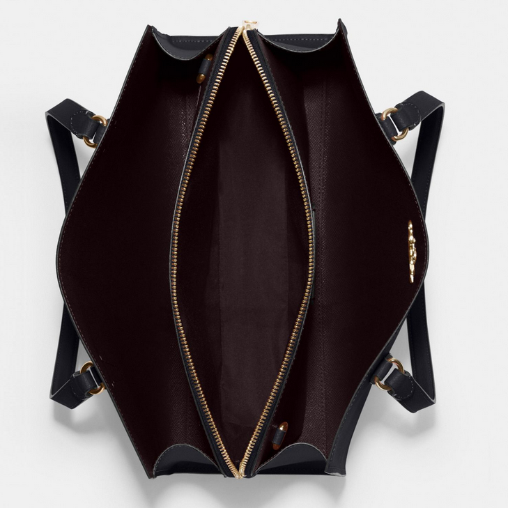 Một thiết kế sang trọng mang tính ứng dụng cao với không gian lưu trữ lớn, có thể để được cả khổ giấy A4 hay laptop 13″. Hệ thống mang gồm có 2 quai xách có kích thước vừa đủ để bạn xách hay đeo sát nách ngoài ra còn có quai chéo tháo rời mang đến sự tiện lợi. Chất liệu Double face crossgrain leather được sử dụng trên túi xách Coach Tatum Carryall mang đến khả năng chống nhăn, chống trầy tốt và giữ form ngay cả khi bạn không để bất kì đồ dùng nào trong túi.